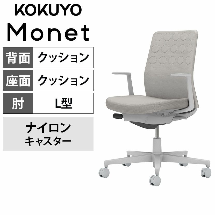 他の画像を見る 【設置無料】 ワークチェア モネット Monet オフィスチェア L字肘(固定肘) 樹脂脚 ウレタンキャスター ランバーサポート付き 背メッシュ 座面布張り 本体/脚ライトグレー 背座ライトグレー C03-G112U コクヨ 椅子 送料無料 送料無料 組立設置付き 組立設置付き 日本製 日本製 ¥ 81,900 税込 詳細を見る