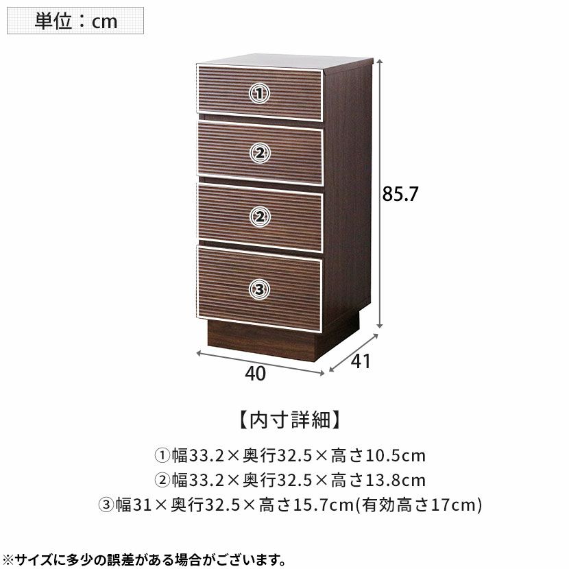 他の画像を見る 幅40cm 4段 サイドチェスト 木製 天然木 無垢 引き出し 収納 チェスト リビング収納 おしゃれ シンプル 北欧 リビング 寝室 ナチュラル ブラウン ウォールナット 送料無料 送料無料 ¥ 39,900 税込 カートに入れる