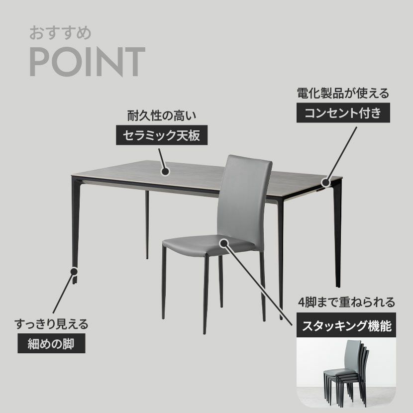 他の画像を見る 【設置無料】4人用 ダイニングテーブルセット 5点 ORV コンセント付き セラミックテーブル モダン スタッキング ダイニングチェア おしゃれ グレー (幅150cm 食卓テーブル×1 食卓椅子×4) 送料無料 送料無料 組立設置付き 組立設置付き ¥ 112,000 税込 カートに入れる