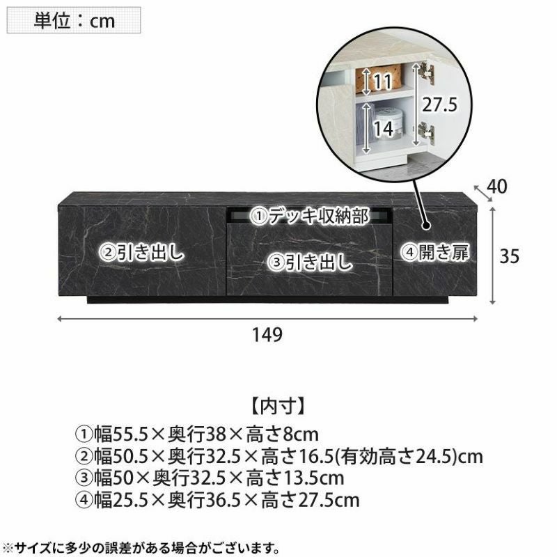 他の画像を見る 【設置無料】幅149cm 日本製 テレビ台 大理石調 収納 引き出し付き フロート風 ロータイプ テレビボード モダン ローボード おしゃれ ホワイト ブラック 白 黒 クーポン対象 クーポン対象 送料無料 送料無料 開梱設置付き 開梱設置付き 完成品 完成品 日本製 日本製 ¥ 47,900 税込 カートに入れる