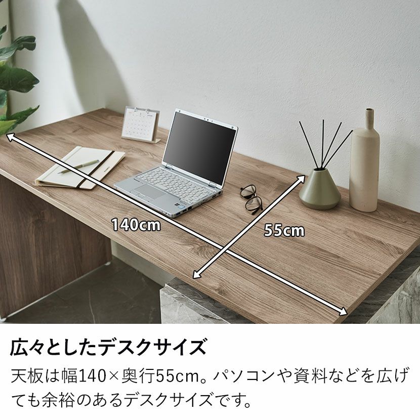 他の画像を見る 幅140cm パソコンデスク 引き出し ワークデスク コンパクト 石目調 デスク おしゃれ オフィスデスク 片袖机 収納 机 木目調天板 北欧 モダン ナチュラル クーポン対象 クーポン対象 送料無料 送料無料 ¥ 46,900 税込 カートに入れる