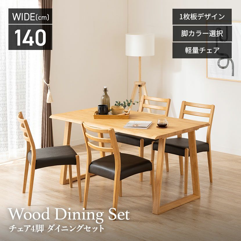 他の画像を見る 【設置無料】4人用 木製 ダイニングテーブルセット(4本脚) 5点 インスパイア 一枚板風 テーブル 天然木 肘なし ダイニングチェア おしゃれ 和モダン (幅140cm 食卓テーブル×1 食卓椅子×4) 送料無料 送料無料 組立設置付き 組立設置付き ¥ 146,900 税込 カートに入れる