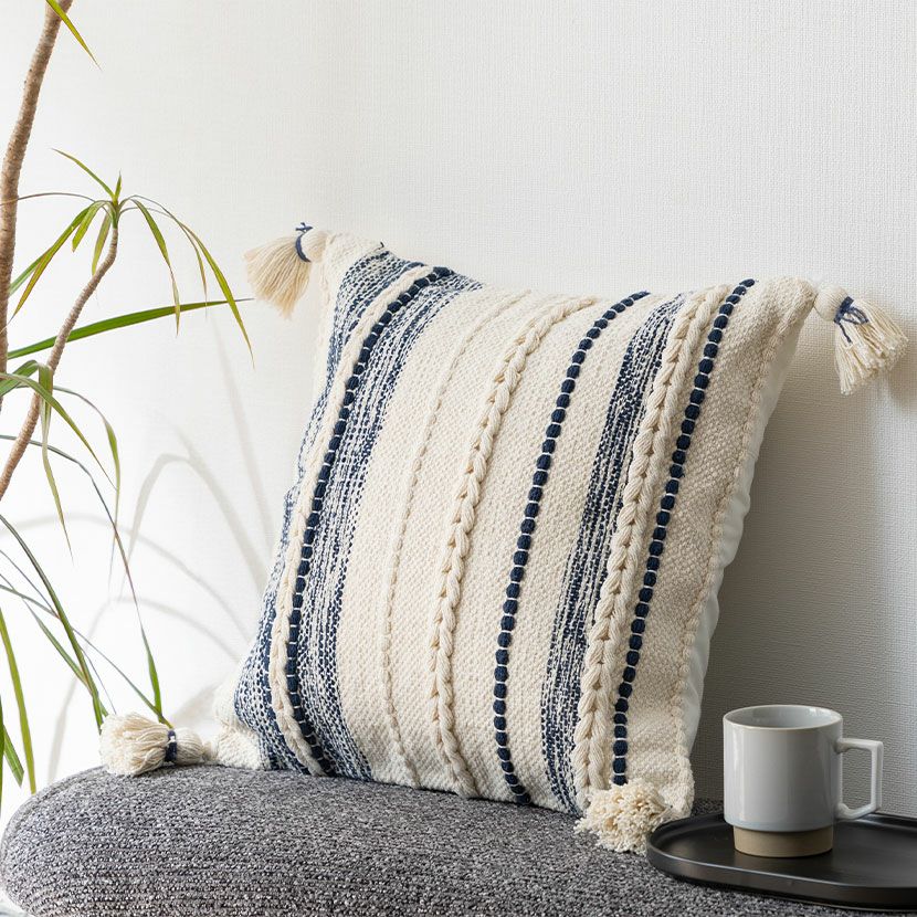 他の画像を見る 正方形 クッションカバー ラインネイビー 45×45cm対応 幾何学模様 綿100% ファブリック 座布団カバー 北欧モダン ソファクッション カバー おしゃれ 送料無料 送料無料 完成品 完成品 ¥ 4,600 税込 カートに入れる