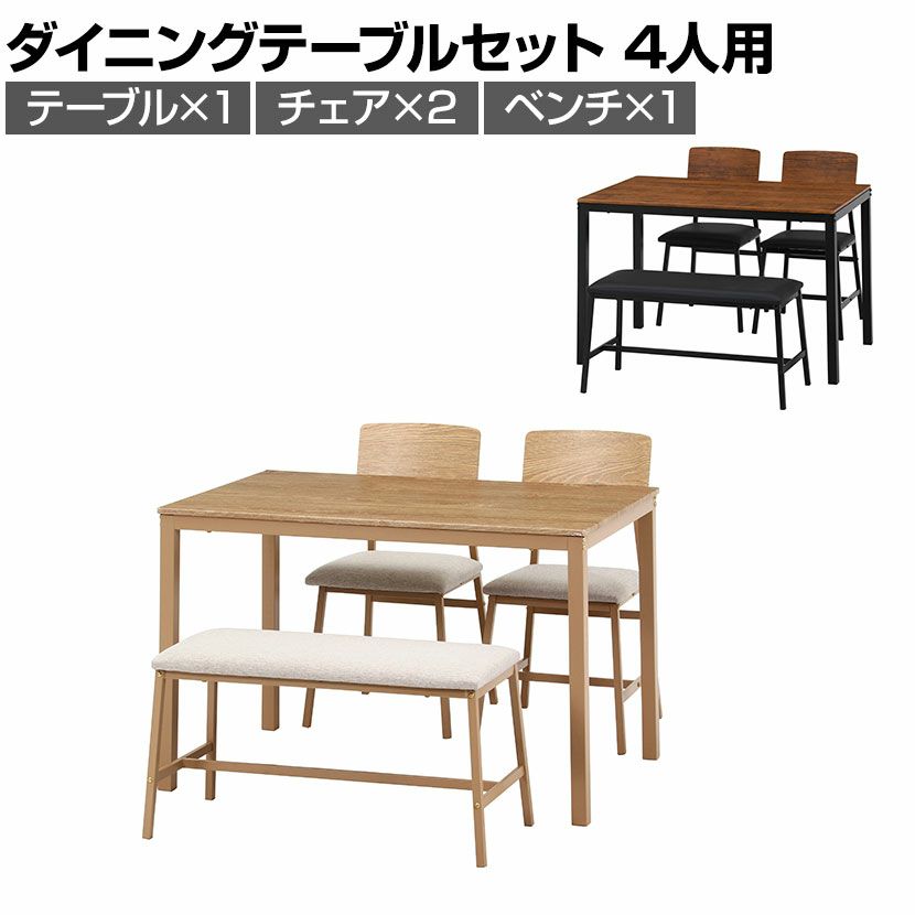 他の画像を見る 4人用 ダイニング4点セット マリー ワークスペース シンプル お洒落 天板:リアルな木目PVC お手入れ簡単 テーブル×1 チェア×2 ベンチ×1 送料無料 送料無料 ¥ 20,290 税込 在庫切れ カートに入れる