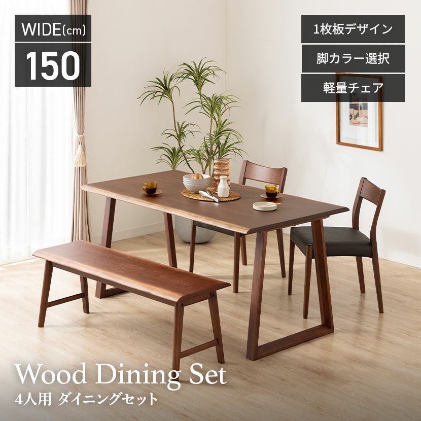 他の画像を見る 【設置無料】4人用 木製 ダイニングテーブルセット(2本脚) 4点 インスパイア 一枚板風 テーブル 天然木 肘なし コンパクト ダイニングチェア おしゃれ 和モダン (幅150cm 食卓テーブル×1 食卓椅子×2 ダイニングベンチ×1) クーポン対象 クーポン対象 送料無料 送料無料 組立設置付き 組立設置付き ¥ 137,800 税込 カートに入れる