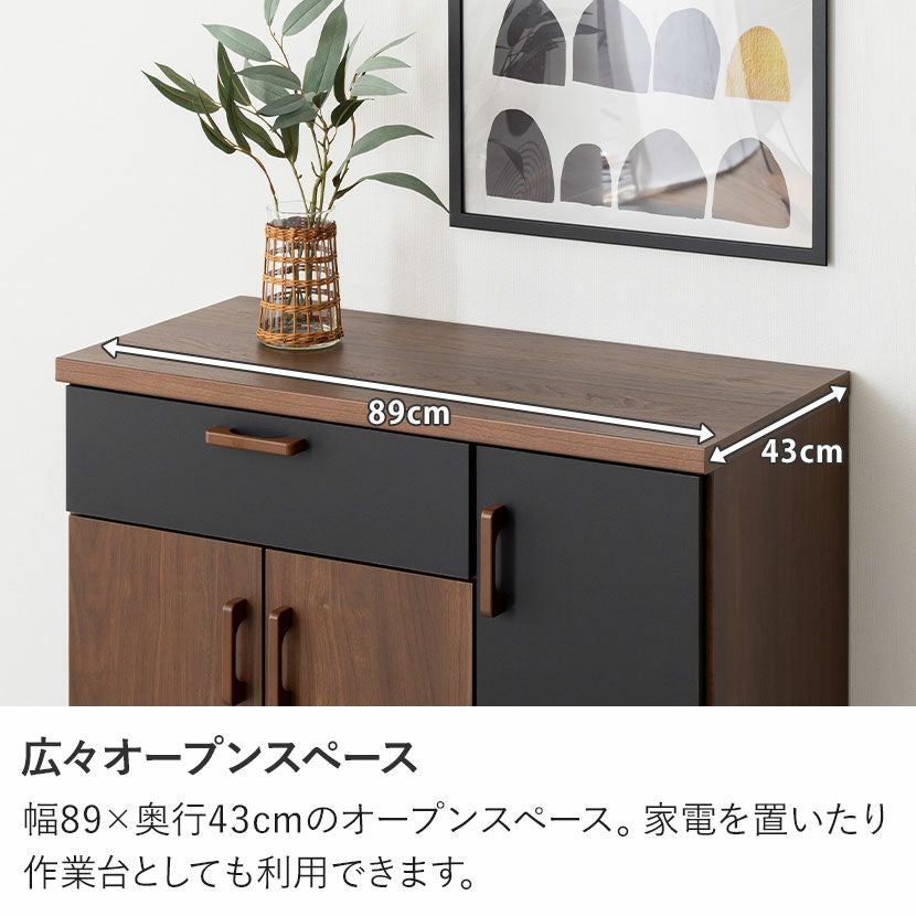 他の画像を見る 幅89cm 木目 食器棚 日本製 TMモデロ 90カウンター BR/BK キッチンキャビネット 引き出し付き レンジ台 キッチンカウンター 北欧モダン キッチン 収納 棚 おしゃれ クーポン対象 クーポン対象 送料無料 送料無料 日本製 日本製 ¥ 33,900 税込 カートに入れる