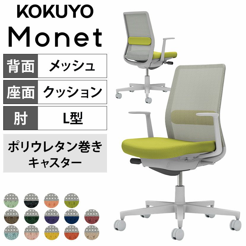 他の画像を見る 【設置無料】 ワークチェア モネット Monet オフィスチェア L字肘(固定肘) 樹脂脚 ウレタンキャスター ランバーサポート付き 背メッシュ 座面布張り 背座同色 本体/脚ブラック C03-B112U コクヨ 椅子 送料無料 送料無料 組立設置付き 組立設置付き 日本製 日本製 ¥ 81,900 税込 詳細を見る