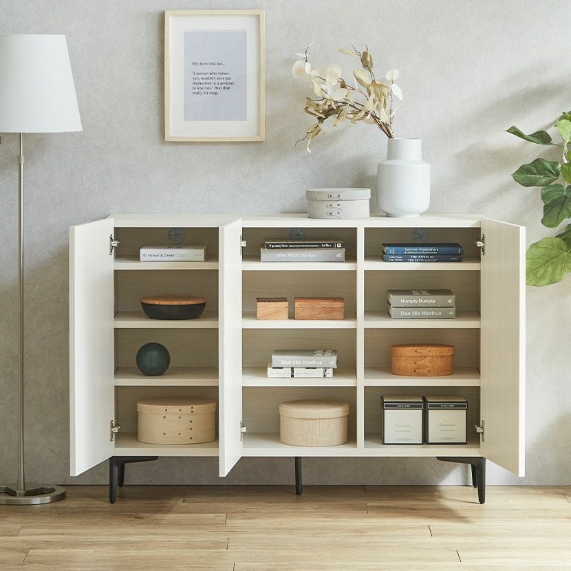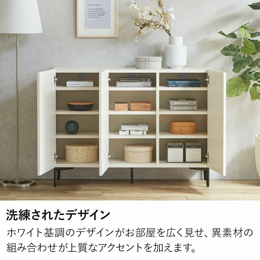 他の画像を見る 【設置無料】幅120cm 木製 サイドボード 日本製 黒スチール脚 スリム キャビネット 収納 リビングボード おしゃれ 北欧 モダン ホワイト 白 ルンバブル クーポン対象 クーポン対象 送料無料 送料無料 組立設置付き 組立設置付き 日本製 日本製 ¥ 49,900 税込 カートに入れる