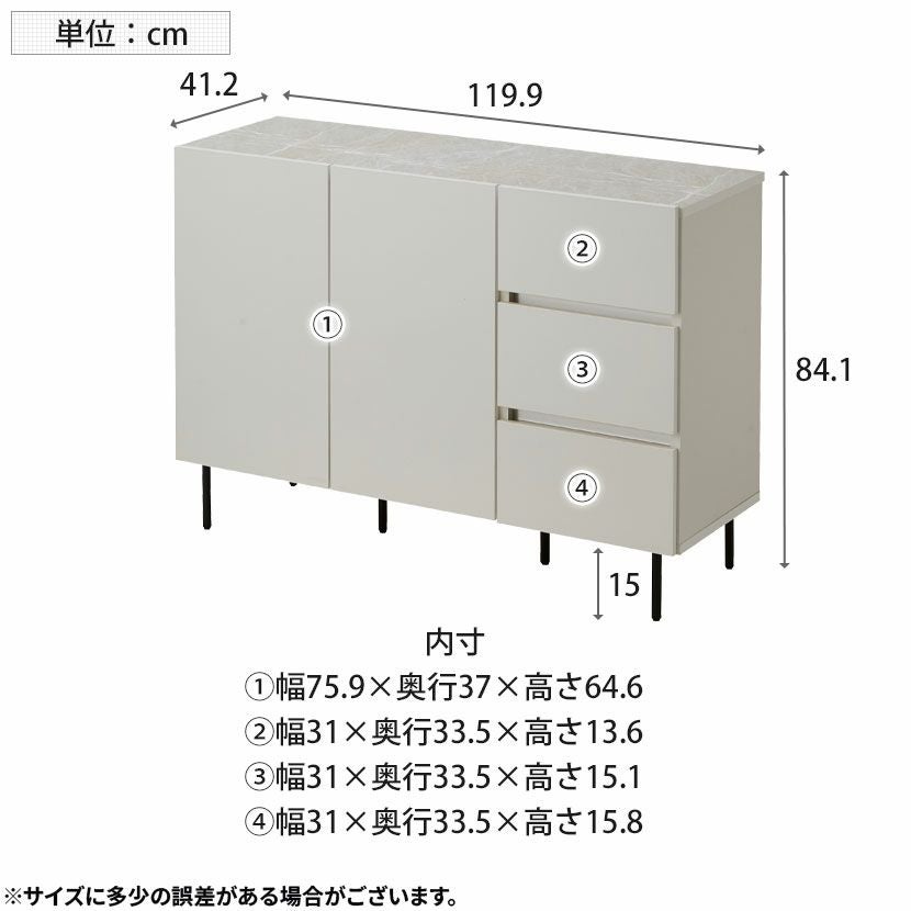 他の画像を見る 【設置無料】幅120cm 大理石調 キャビネット 日本製 木製 引き出し 棚 収納 リビングボード スリム サイドボード おしゃれ シンプルモダン ブラック ホワイト ルンバブル クーポン対象 クーポン対象 送料無料 送料無料 組立設置付き 組立設置付き 日本製 日本製 ¥ 49,900 税込 カートに入れる