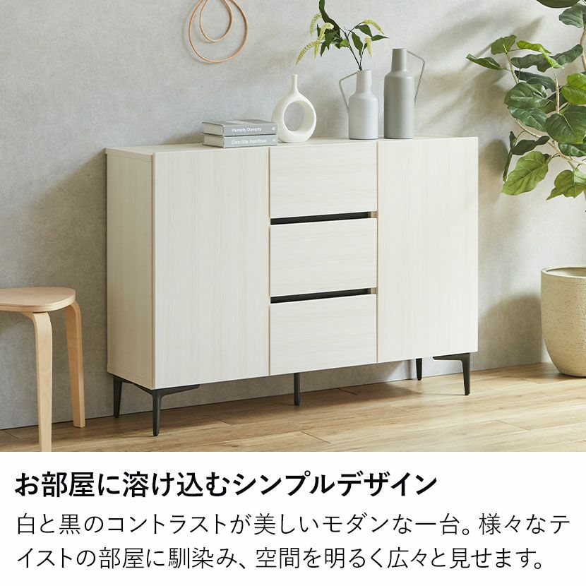 他の画像を見る 【設置無料】 幅120cm サイドボード 日本製 木製 黒スチール脚 スリム キャビネット 引出し 収納 リビングボード おしゃれ モダン ホワイト 白 ルンバブル クーポン対象 クーポン対象 送料無料 送料無料 組立設置付き 組立設置付き 日本製 日本製 ¥ 54,800 税込 カートに入れる