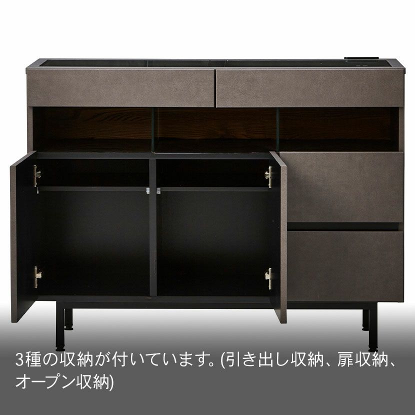 他の画像を見る 【設置無料】 幅110cm サイドボード セラミック調 木目調 2口コンセント付き 引出し付き オープン収納 リビングキャビネット ホテルライク風 モダン グレー ブラウン ルンバブル 送料無料 送料無料 組立設置付き 組立設置付き ¥ 65,800 税込 カートに入れる