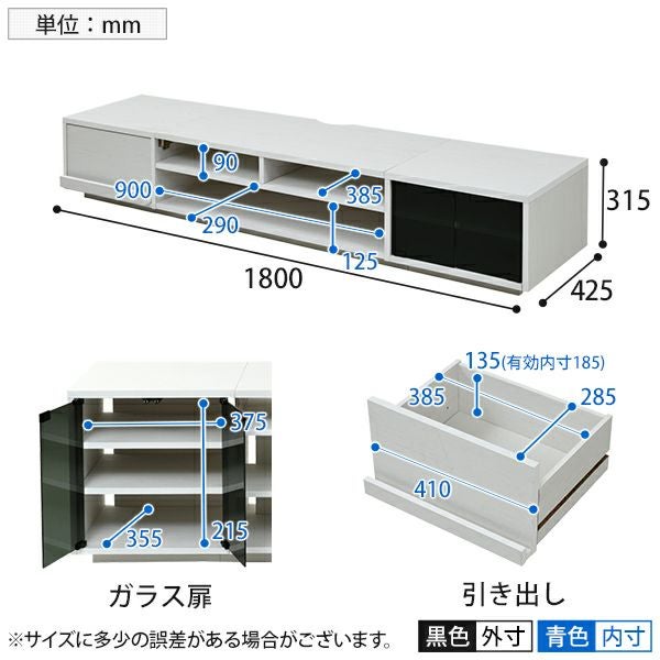 他の画像を見る テレビ台 リビングボード ロータイプ 引き出し×ガラス扉 配線収納 幅1800×奥行425×高さ315mm クーポン対象 クーポン対象 送料無料 送料無料 ¥ 28,990 税込 カートに入れる