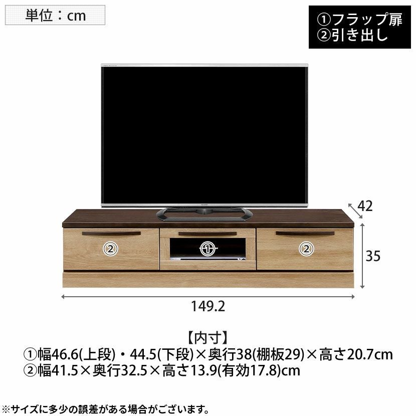 他の画像を見る 幅149.2cm テレビボード 木目調 引き出し フラップ扉 収納 ツートンカラー テレビ台 TV台 TVボード ローボード おしゃれ リビング シンプル ナチュラル 和モダン 送料無料 送料無料 ¥ 29,900 税込 カートに入れる