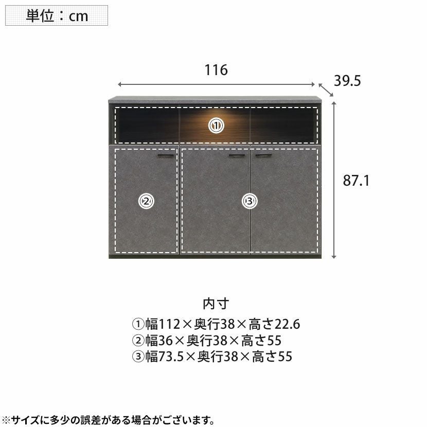 他の画像を見る 【設置無料】幅116cm サイドボード 日本製 石目調 リビング 収納 コレクションボード LED 照明 ガラス 飾り棚 コレクションケース おしゃれ シンプル モダン グレー クーポン対象 クーポン対象 送料無料 送料無料 組立設置付き 組立設置付き 日本製 日本製 ¥ 79,800 税込 カートに入れる