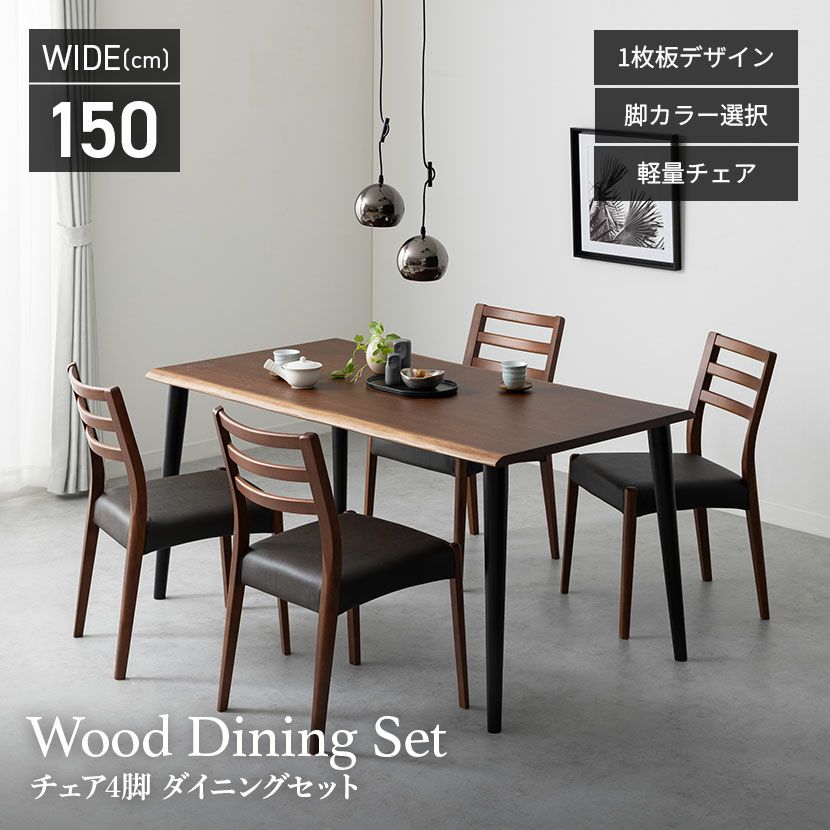 他の画像を見る 【設置無料】4人用 木製 ダイニングテーブルセット(4本脚) 5点 インスパイア 一枚板風 テーブル 天然木 肘なし ダイニングチェア おしゃれ 和モダン (幅150cm 食卓テーブル×1 食卓椅子×4) 送料無料 送料無料 組立設置付き 組立設置付き ¥ 149,900 税込 カートに入れる