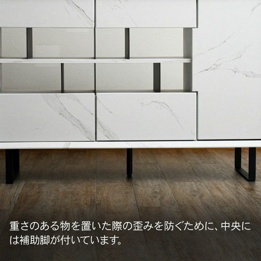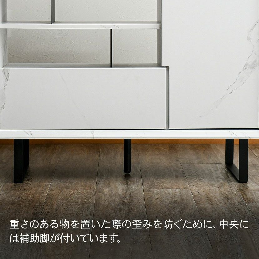 他の画像を見る 【設置無料】幅120cm サイドボード 大理石調 収納 引き出し 開き扉 脚付き ラック リビングボード リビング収納 間仕切り キャビネット おしゃれ モダン 白 ホワイト グレー ルンバブル クーポン対象 クーポン対象 送料無料 送料無料 組立設置付き 組立設置付き ¥ 53,900 税込 カートに入れる