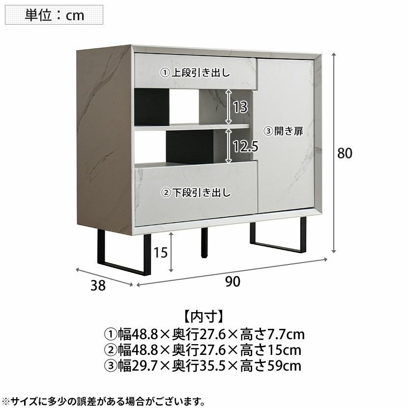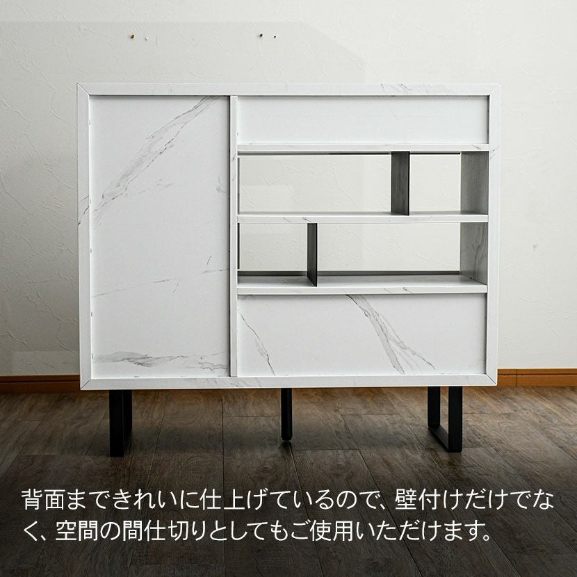 他の画像を見る 【設置無料】幅90cm サイドボード 大理石調 収納 引き出し 開き扉 脚付き ラック リビングボード リビング収納 間仕切り キャビネット おしゃれ モダン 白 ホワイト グレー ルンバブル クーポン対象 クーポン対象 送料無料 送料無料 組立設置付き 組立設置付き ¥ 50,900 税込 カートに入れる