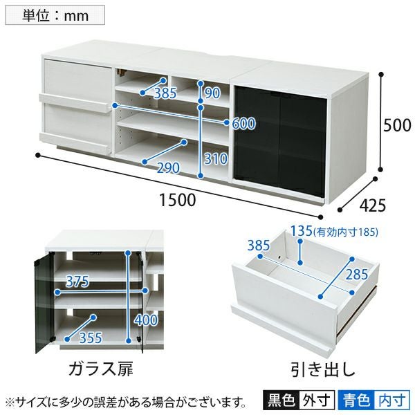 他の画像を見る テレビ台 リビングボード ハイタイプ 引き出し×ガラス扉 配線収納 幅1500×奥行425×高さ500mm クーポン対象 クーポン対象 送料無料 送料無料 ¥ 29,990 税込 カートに入れる