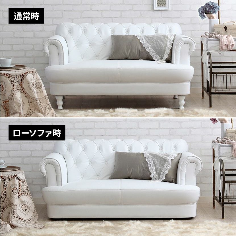 他の画像を見る 幅121cm 2人掛け ソファ オセロ 肘付き 脚着脱可能 ボタン締め PVCレザー ローソファ 2人用ソファー 2P コンパクト エレガント プリンセス 姫系 大人可愛い 白 クーポン対象 クーポン対象 送料無料 送料無料 ¥ 49,990 税込 カートに入れる