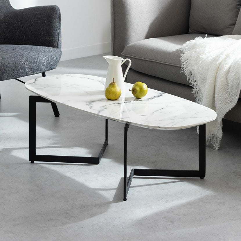 他の画像を見る 幅110cm リビングテーブル 大理石調 スチール脚 楕円形 センターテーブル ローテーブル ソファテーブル リビング おしゃれ シンプル モダン モノトーン クーポン対象 クーポン対象 送料無料 送料無料 ¥ 48,900 税込 カートに入れる