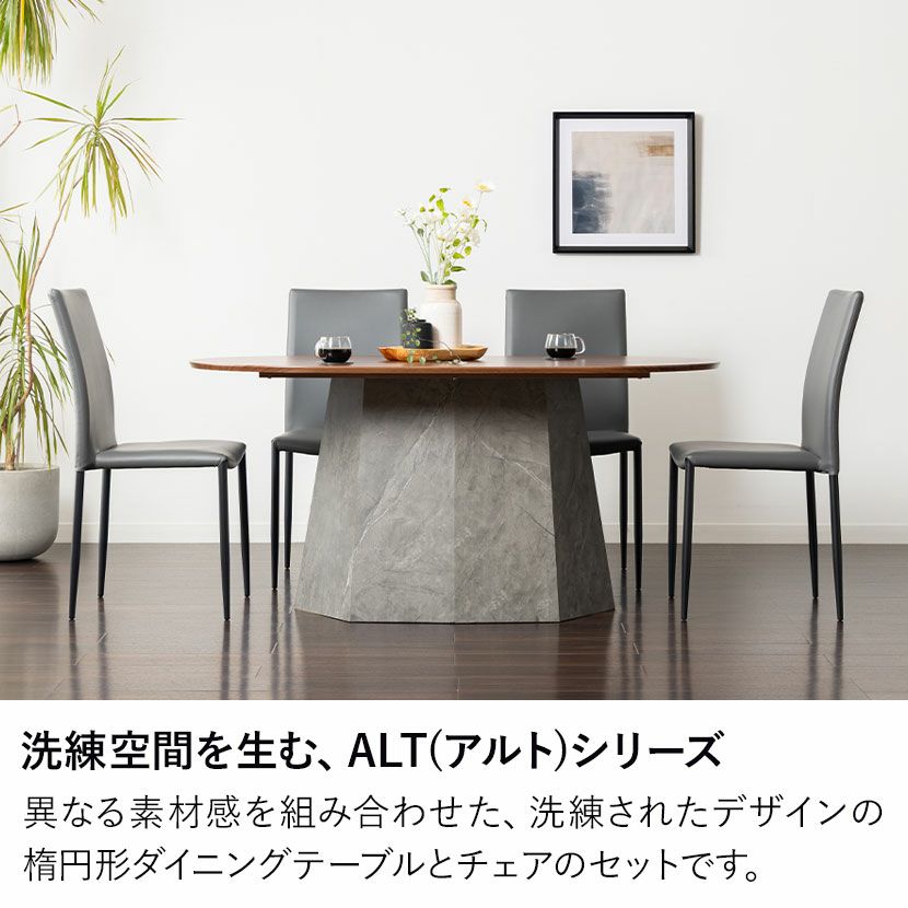 他の画像を見る 【設置無料】4人用 ダイニングテーブルセット 楕円形 5点 ALT 木目 テーブル スタッキング ダイニングチェア おしゃれ ウッディモダン (幅150cm 食卓テーブル×1 食卓椅子×4) 送料無料 送料無料 組立設置付き 組立設置付き ¥ 119,000 税込 カートに入れる