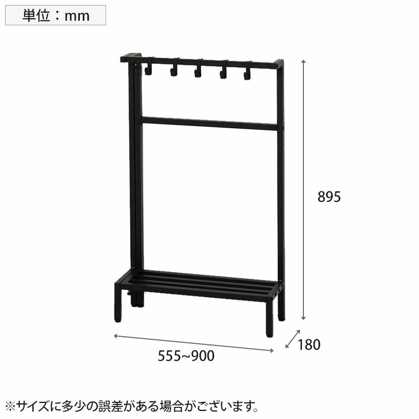 他の画像を見る 幅55.5cm 伸縮カバンラック コンパクト フック付き 小物収納 棚付き 固定脚 ハンガー カバンラック カバンハンガー コートハンガー ハンガーラック 収納家具 玄関 送料無料 送料無料 ¥ 9,500 税込 在庫切れ カートに入れる