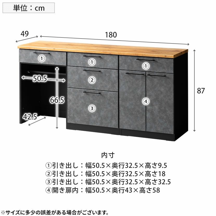 他の画像を見る 【設置無料】幅180cm キッチンカウンター AURA 日本製 メラミン天板 ゴミ箱スペース 引き出し 収納 作業台 キッチン棚 レンジ台 北欧モダン キッチン収納 食器棚 おしゃれ 黒 ブラック クーポン対象 クーポン対象 送料無料 送料無料 組立設置付き 組立設置付き 日本製 日本製 ¥ 119,000 税込 カートに入れる