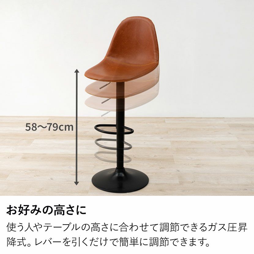 他の画像を見る 昇降 カウンターチェア 回転 椅子 合皮 背丸タイプ バーチェア ハイスツール 背もたれ付き ハイチェア おしゃれ カフェ風 ヴィンテージ風 ブラウン ブラック 黒 クーポン対象 クーポン対象 送料無料 送料無料 ¥ 8,400 税込 カートに入れる