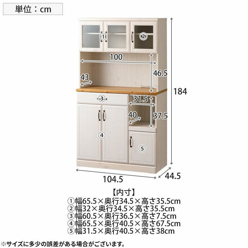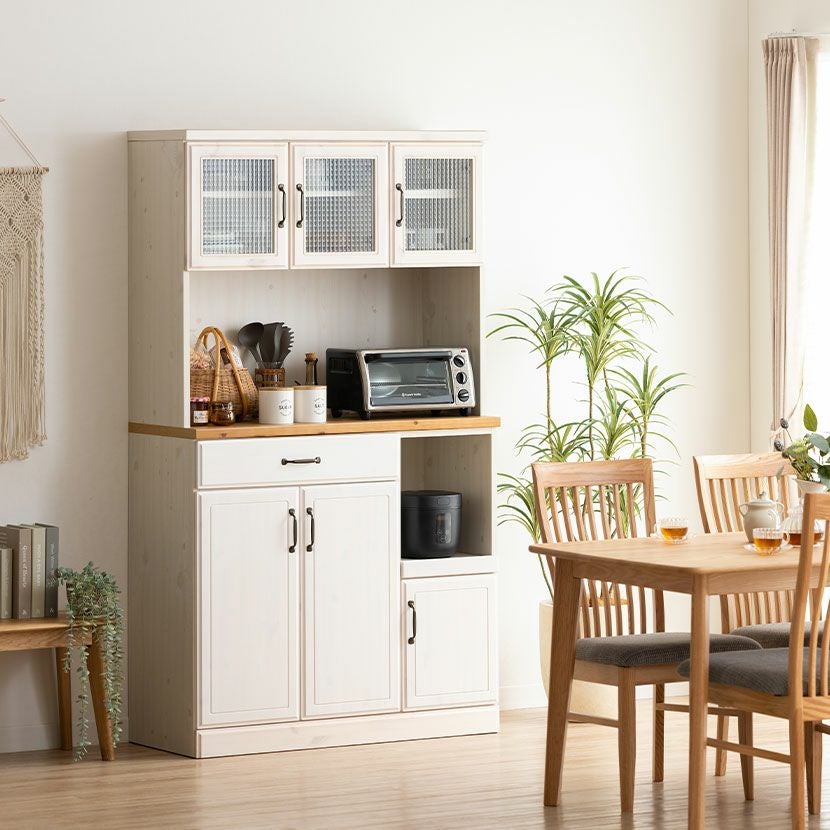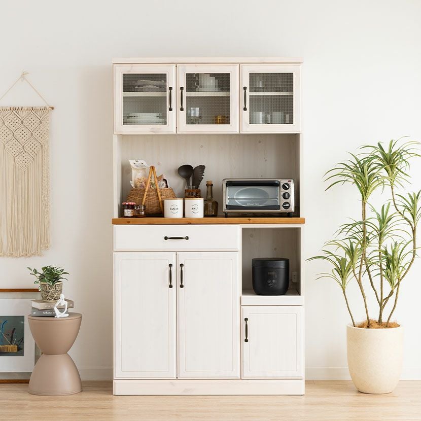 他の画像を見る 【設置無料】幅104.5cm 食器棚 日本製 木製 ガラス扉 スライド棚付き 引出し付き 収納 レンジ台 キッチンボード カップボード おしゃれ フレンチカントリー ダイニング 白 クーポン対象 クーポン対象 送料無料 送料無料 組立設置付き 組立設置付き 日本製 日本製 ¥ 89,900 税込 カートに入れる