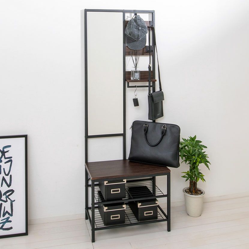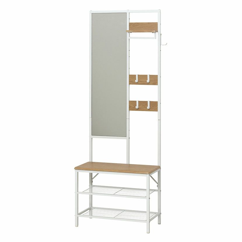 他の画像を見る 幅62cm 多機能ハンガーラック ミラー付き 棚付き ベンチ付き フック 木目柄 アジャスター付き コートハンガー ハンガーラック ミラー 小物収納 玄関 リビング 寝室 送料無料 送料無料 ¥ 13,900 税込 カートに入れる
