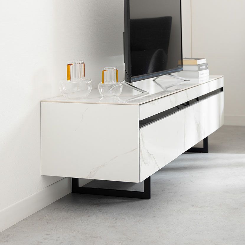 【設置無料】 幅160cm テレビボード セラミック天板 大理石風 スチール脚 引出し付き 収納 テレビ台 TVボード リビングボード モダン モノトーン グレー ホワイト ブラック ルンバブル