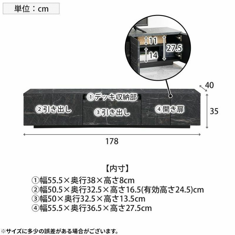 【設置無料】幅178cm 日本製 テレビ台 大理石調 収納 引き出し付き フロート風 ロータイプ テレビボード モダン ローボード おしゃれ ホワイト ブラック 白 黒